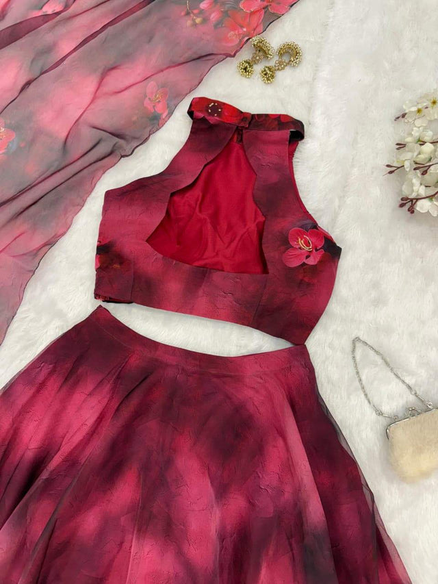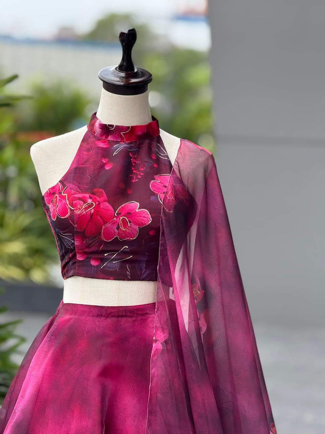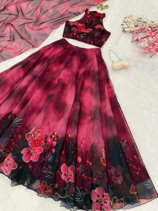 Admiring Pink Color Digital Printed Organza Work Lehenga