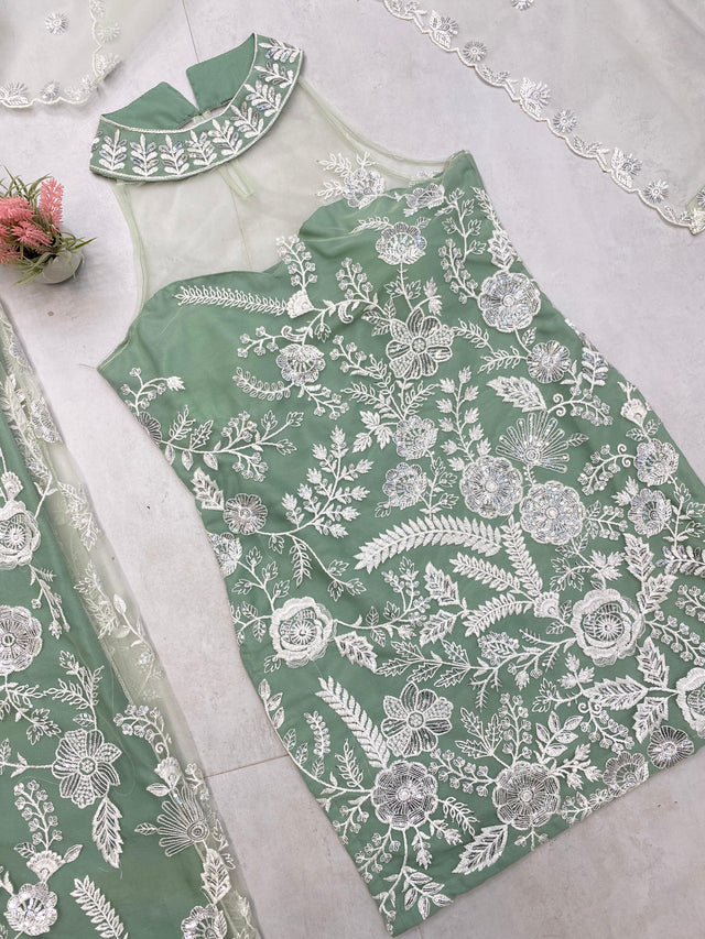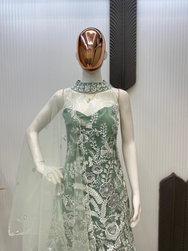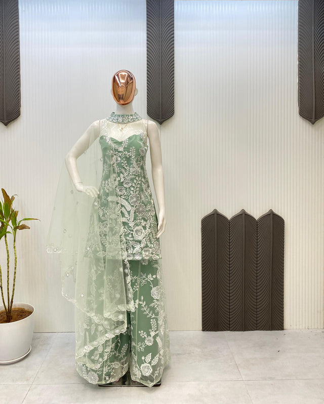 Adorable Embroidery Work Rama Color Palazzo Suit
