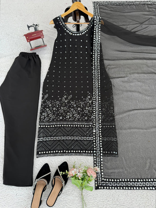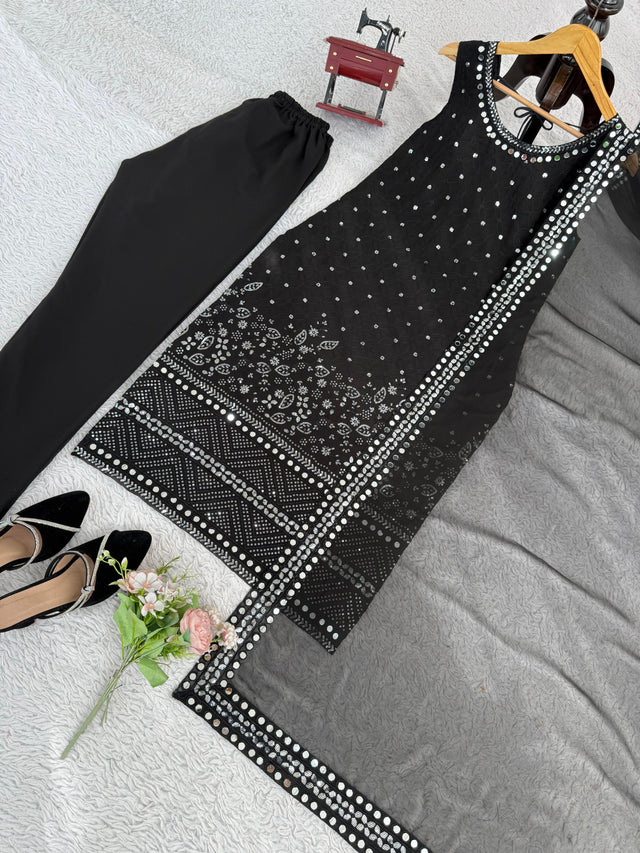 Alluring Black Color Georgette Thread Work Salwar Suit