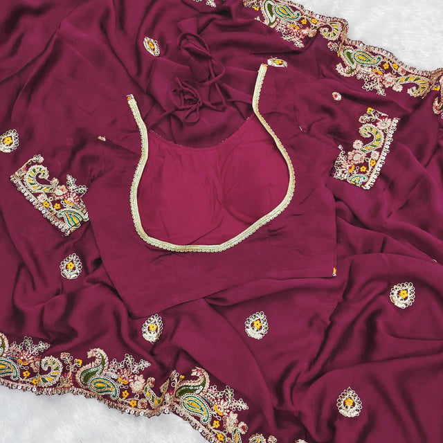 👗 Sari Fabric: Premium Noha Crush With Heavy Embroidery Threads 🧵 Codding & Sequins Work