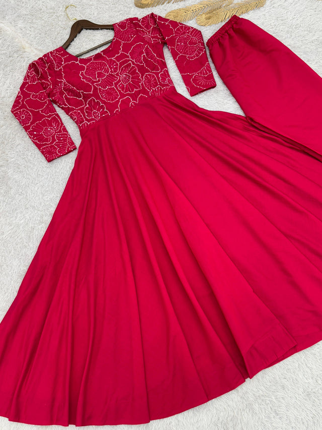 👉👗💥Perfect Comfortable 🎗️ Gown 2 Piece In Embroidery And Beads Hand Worked With Well Fitted Gown And Coordinated Bottom👗💃🛍👌