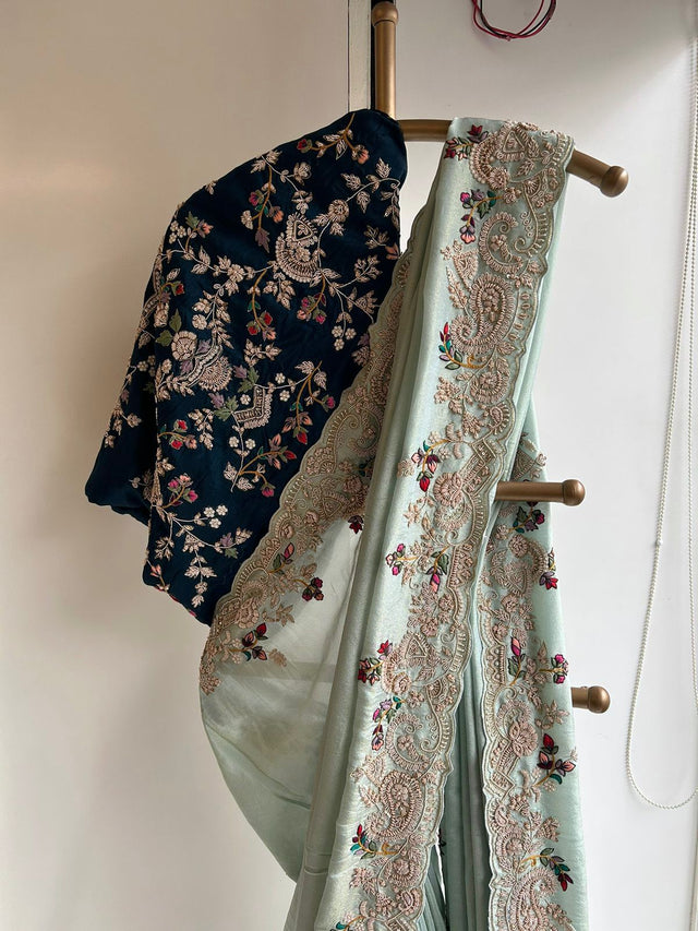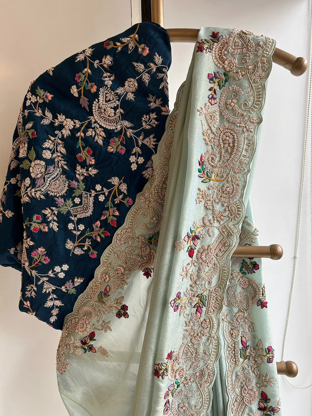 | Saree Fabric | Chinon Silk with Heavy Embroidery |