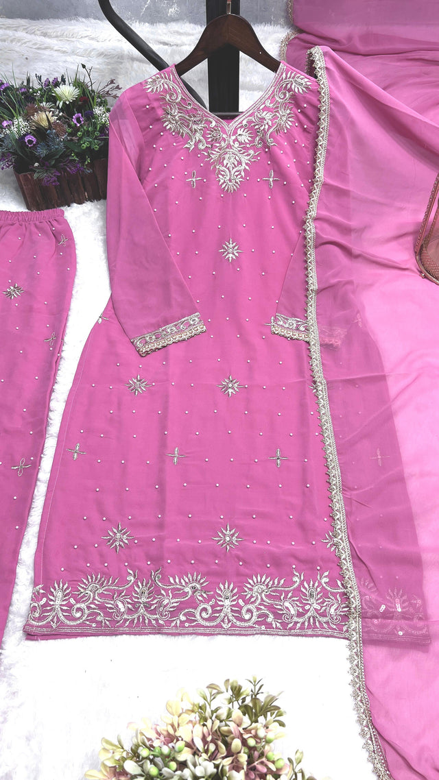 Attractive Embroidery Work Pink Color Palazzo Suit
