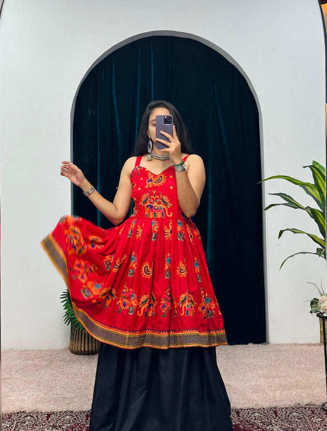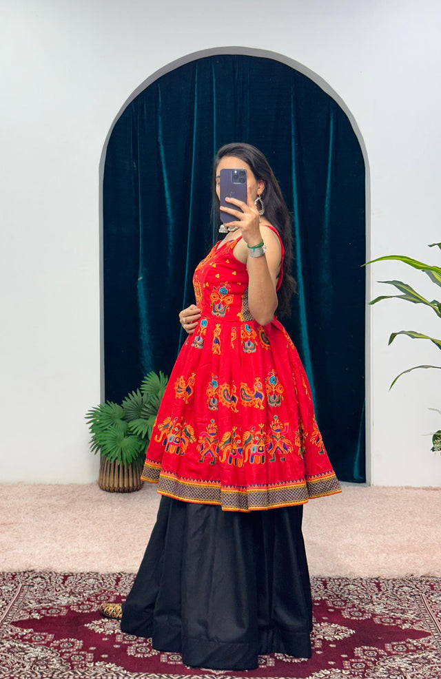 Attractive Red Color Navratri Lehenga With Top
