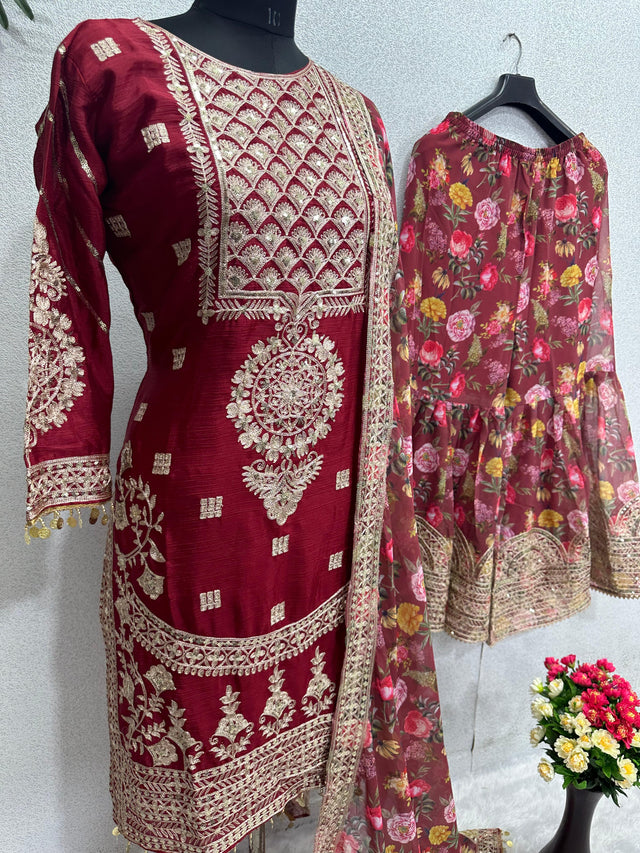 | WORK | CHINE SEQUINS WORK WITH DIGITAL PRINT AND SAMOSA LESS |
