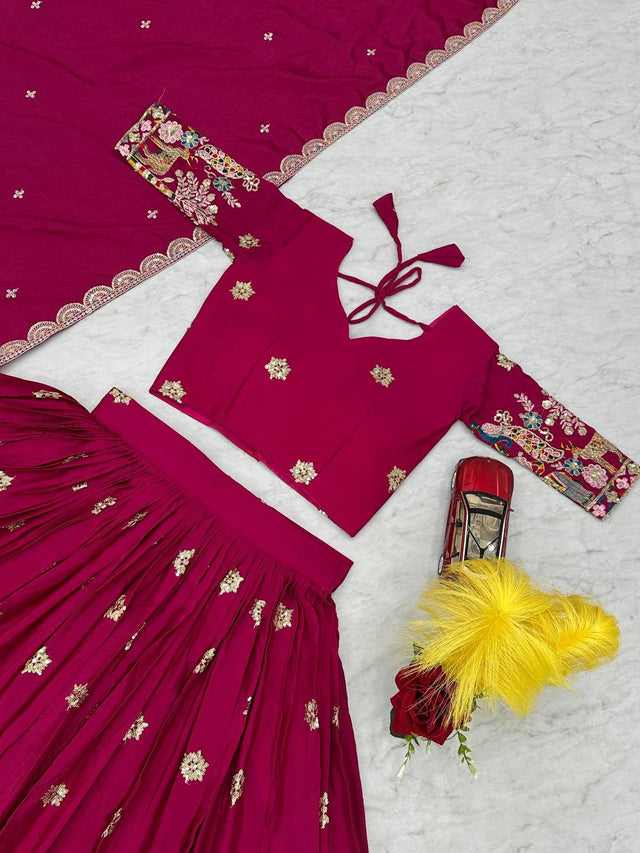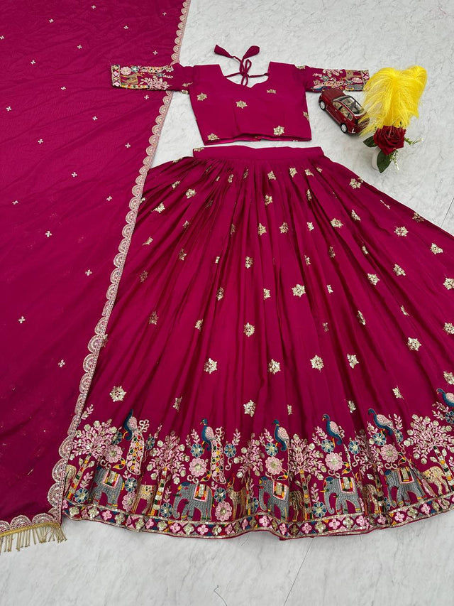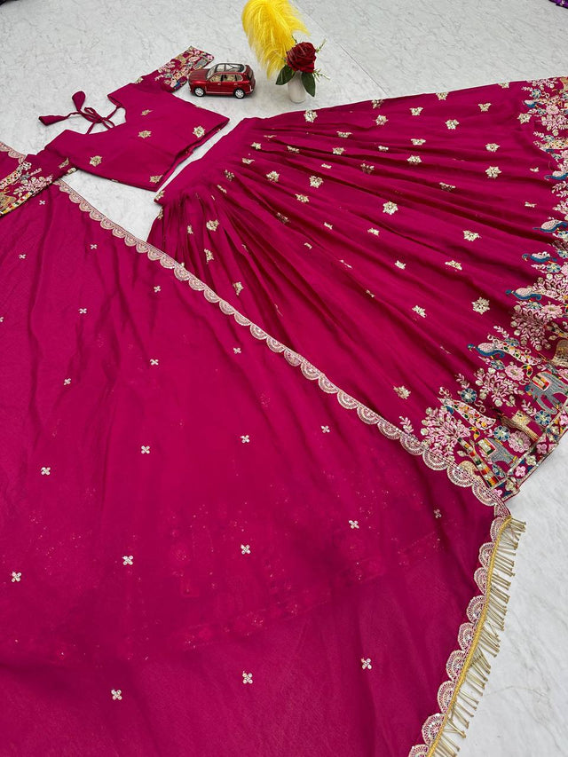 Awesome Chinon Pink Color Sequence Work Lehenga Choli