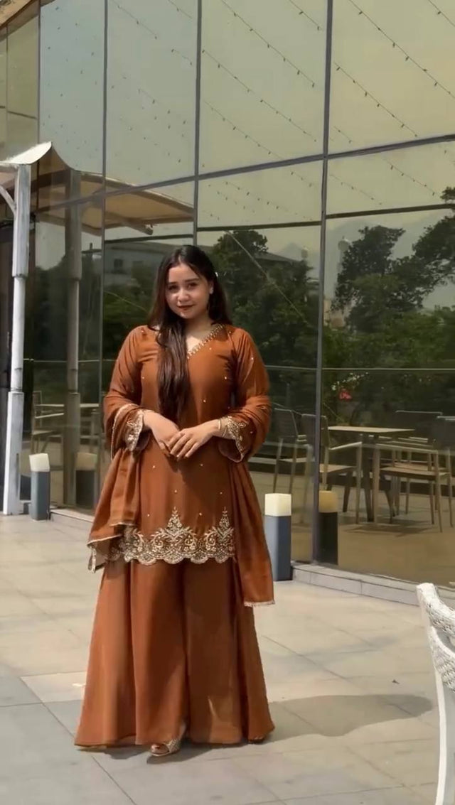 *Plazzo Fabrics* :Heavy Faux Georgette With 5mm Embroidery Sequence With Fully Flair