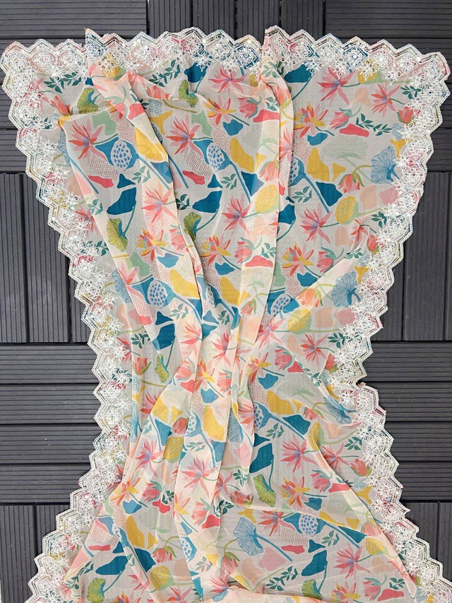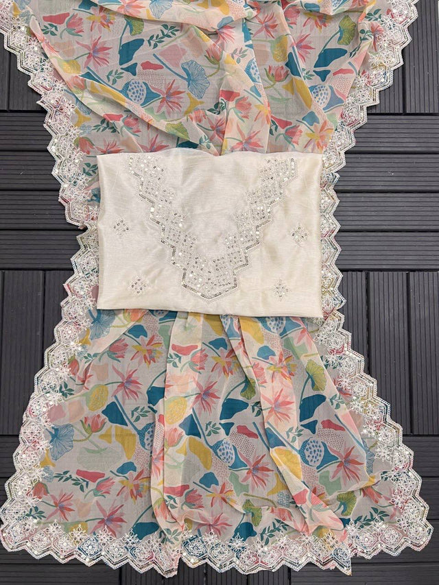 | Work | Digital Prints & Embroidery Codding & Sequins Work With Fancy CutWork Border |