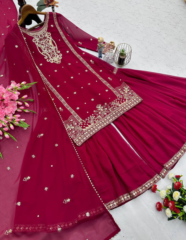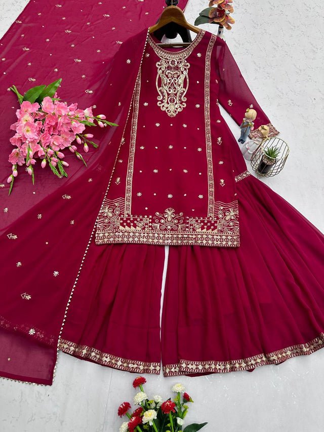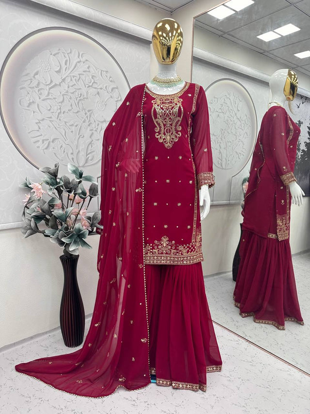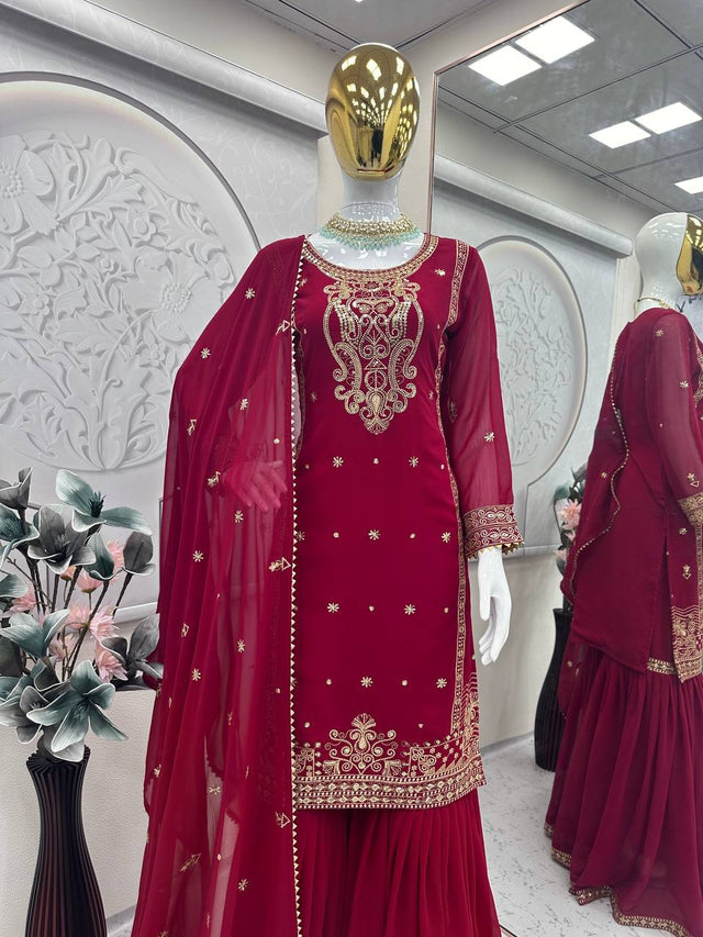 Awesome Georgette Sequins Work Red Color Sharara Suit
