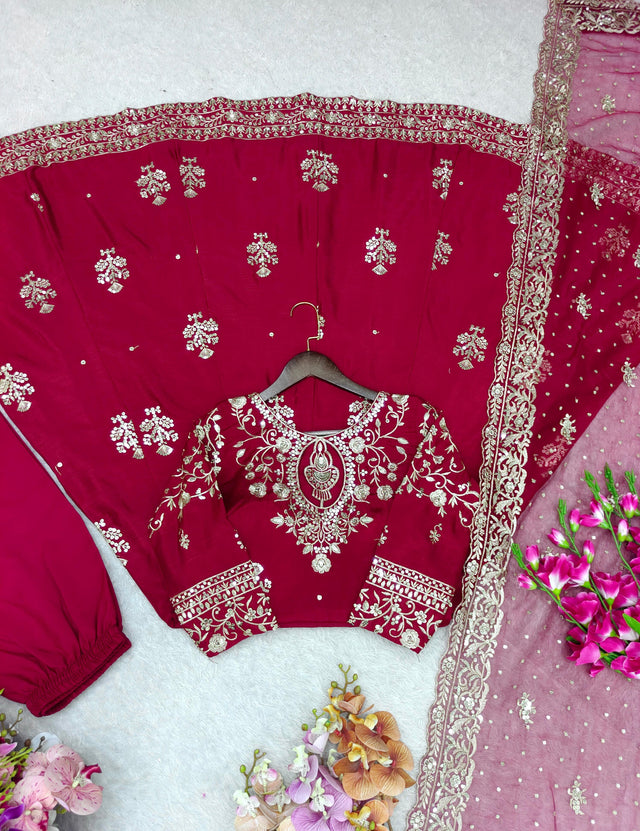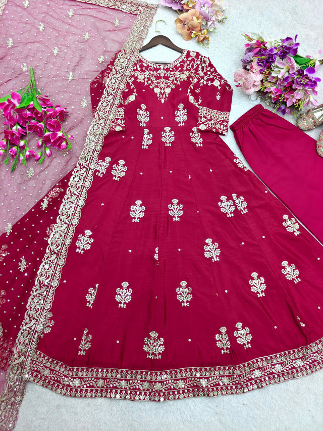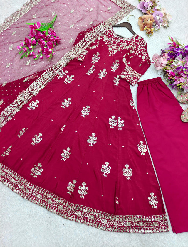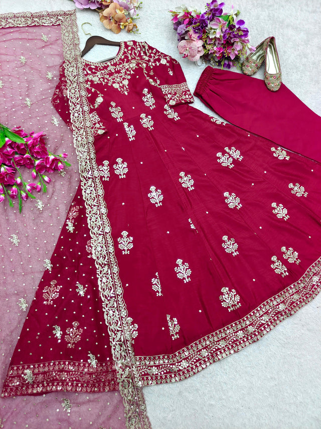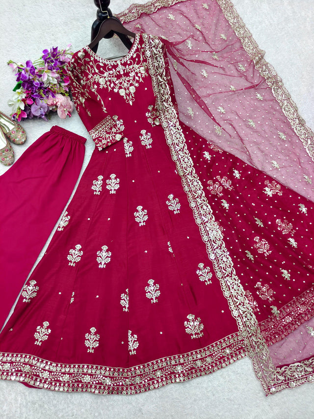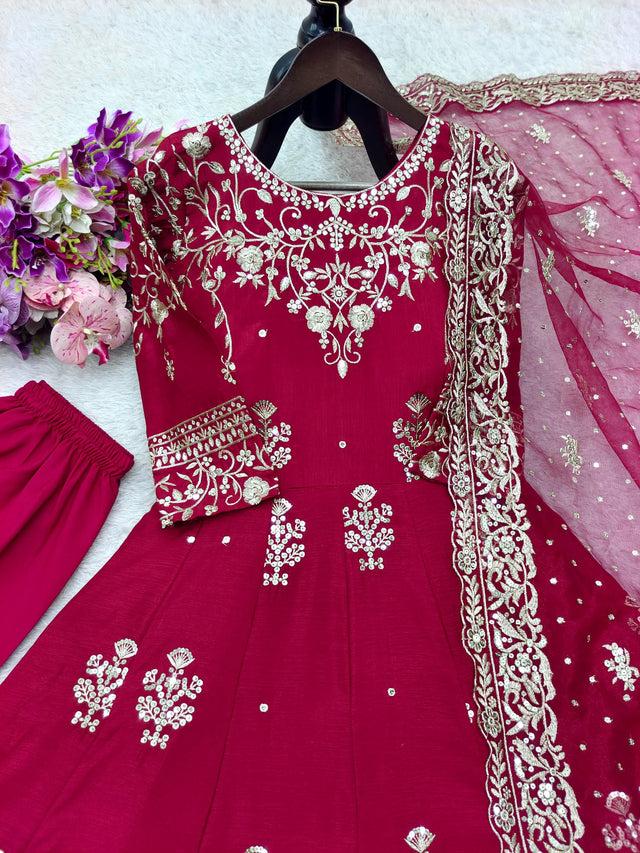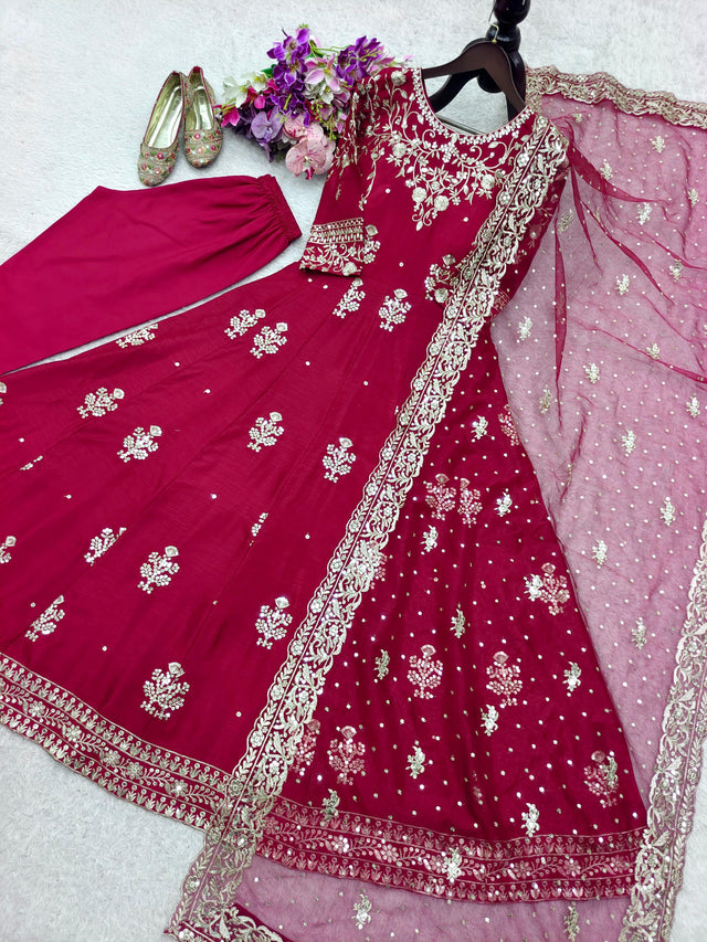 🩱Gown Fabric🩱: Pure Chinon Silk With Embroidery 5mm Sequins Work With Sleeves With (Front Back Side Full-Work)