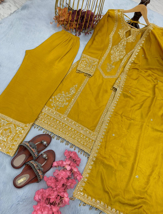 Beautiful Embroidery Sequence Work Yellow Color Anarkali Suit