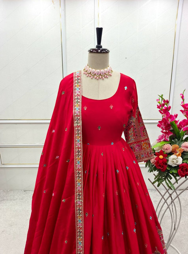 Beautiful Embroidery Work Red Color Anarkali Gown