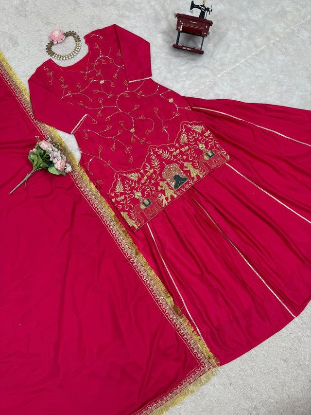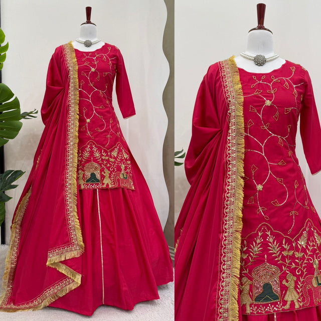 Beautiful Embroidery Work Pink Color Top With Lehenga choli