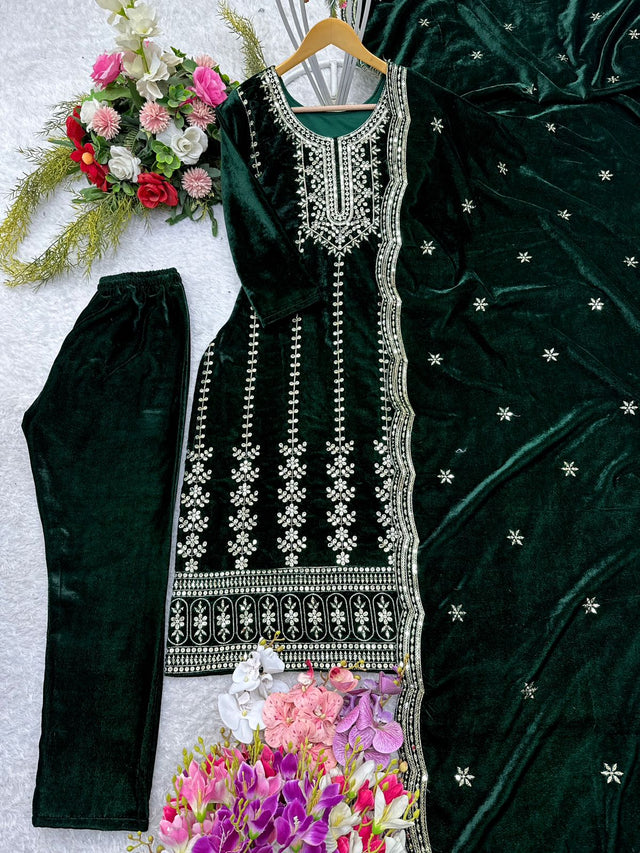 Beautiful Green Color Velvet 5mm Sequence Work Salwar Suit