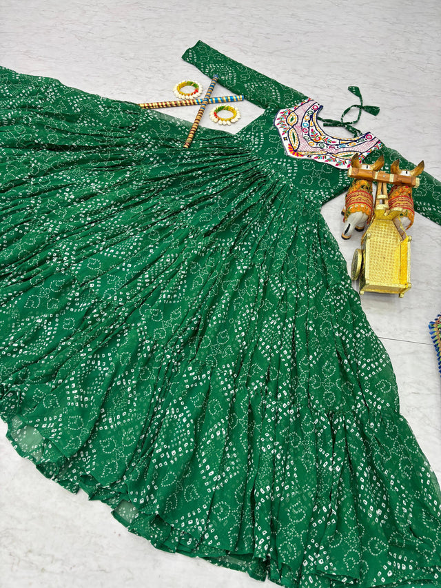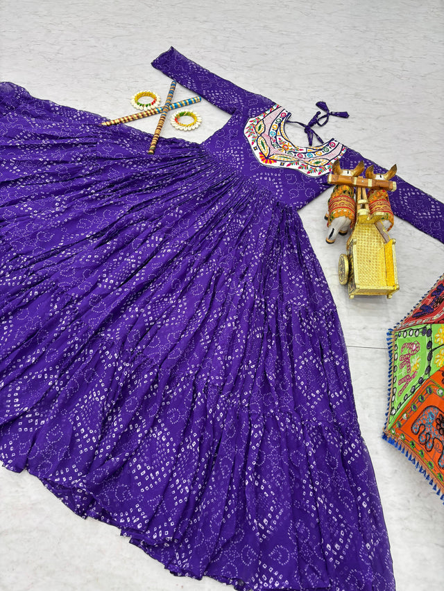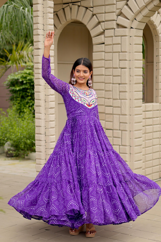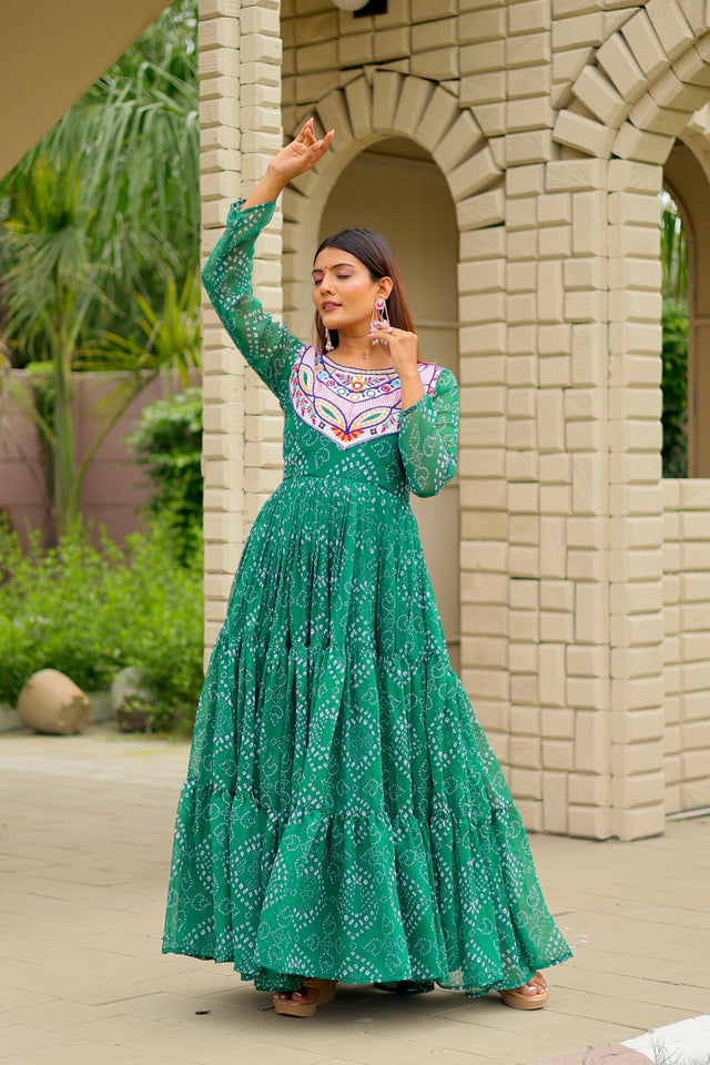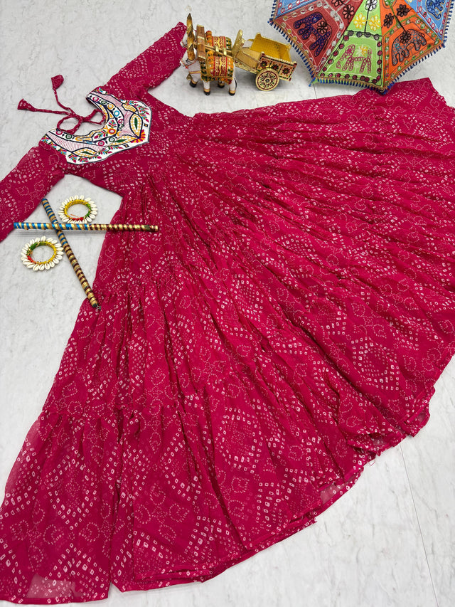 Navratri Wear Pink Georgette Embroidery Work Gown