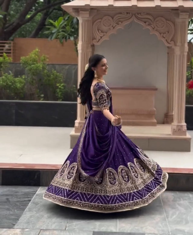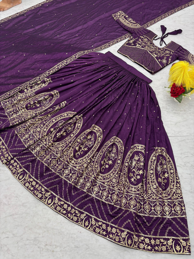 Beautiful Purple Vichitra Silk Embroidery Lehenga Choli