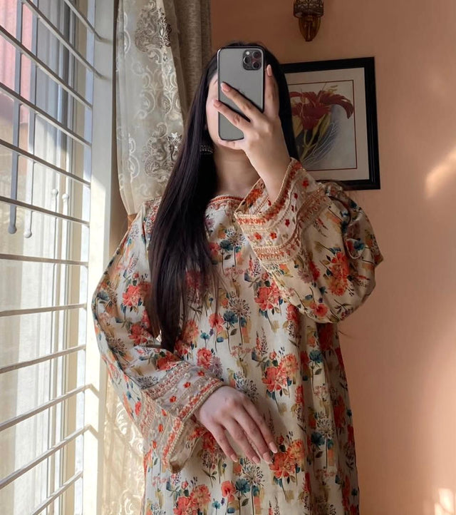 Top Fabric : Pure Natural Roman Silk With Digital Print With Embroidery 5 mm Sequence Work With Sleeves