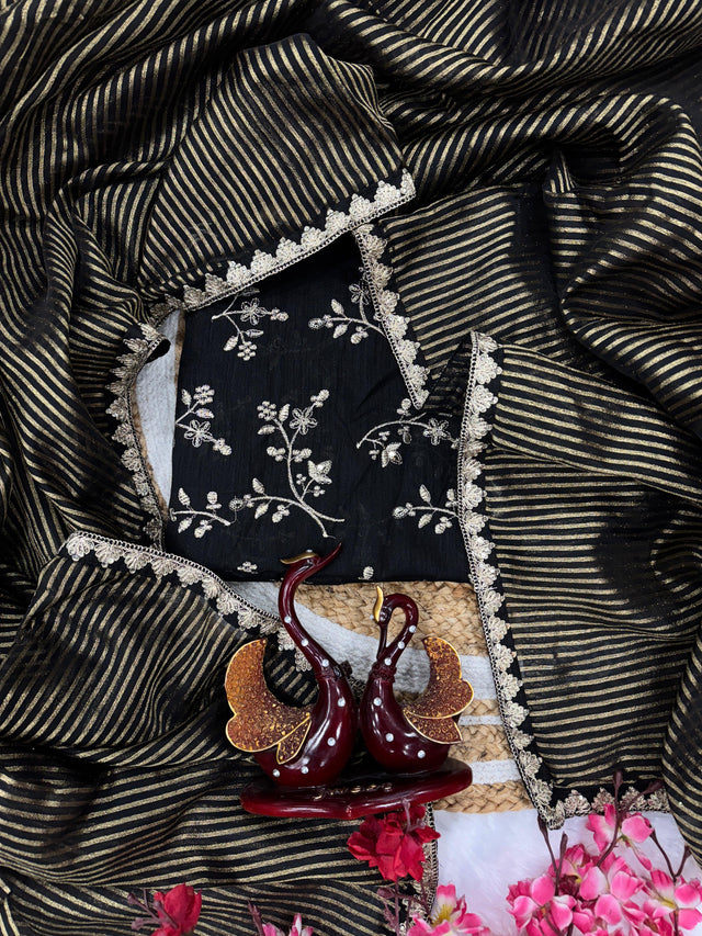 ⭕SAREE FAB. : Gold zari line in tissue fabric