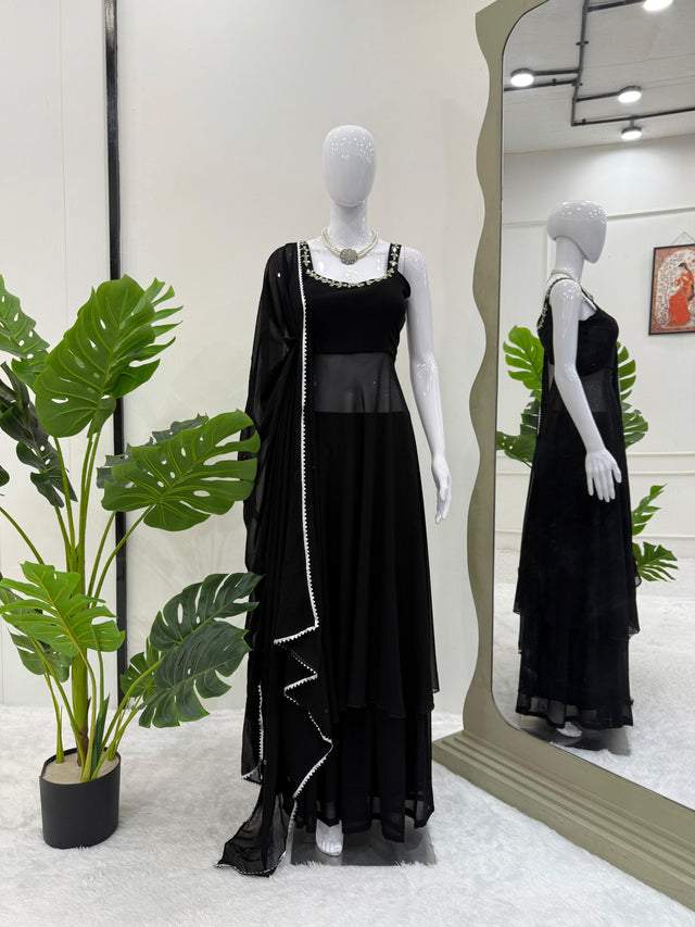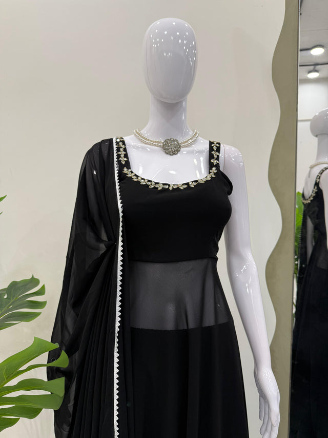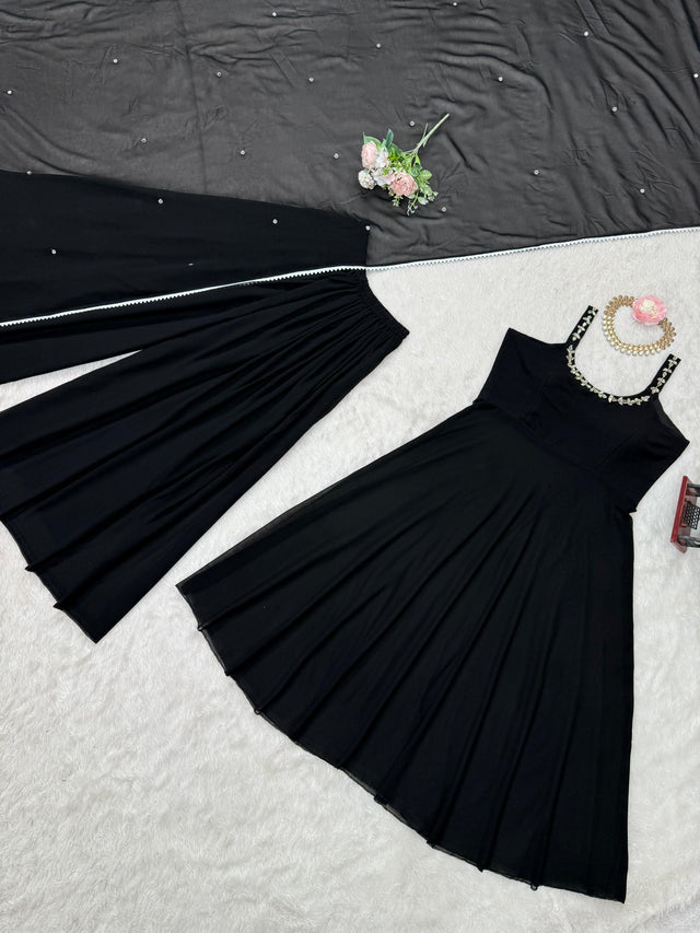 Black Color Georgette Awesome Top With Palazzo