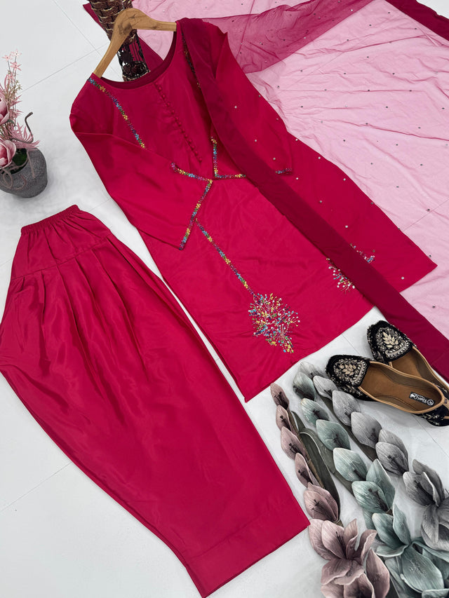 #top Work : Heavy Embroidered Sequence Work With Fancy Flair Sleeves