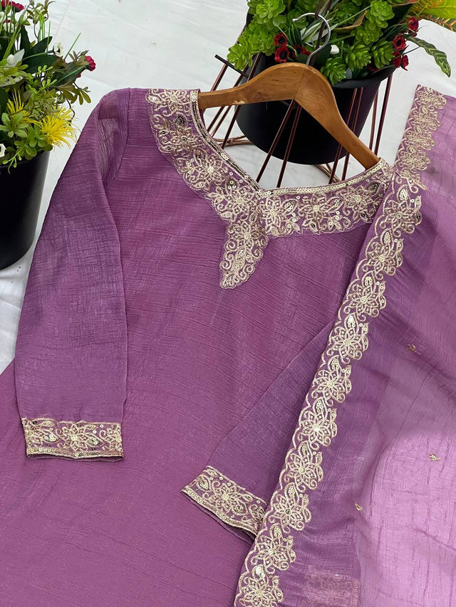 Captivating Crunchy Silk Purple Color Sharara Suit
