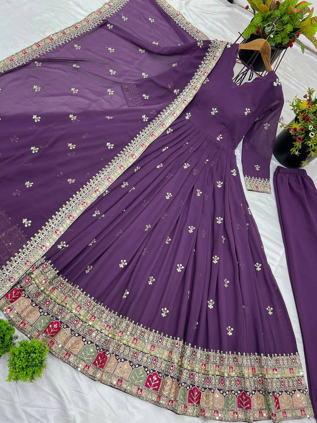 👗 *Gown Fabric* :Faux Georgette With *Full Heavy Embroidery Sequence Work* with Sleeve*