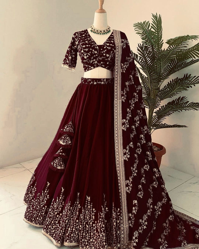 Captivating Maroon Color Heavy Embroidery Sequence Work Lehengha Choli