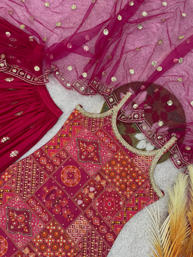 Captivating Pink Chinon Silk Sequence Work Sharara Suit