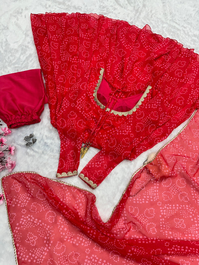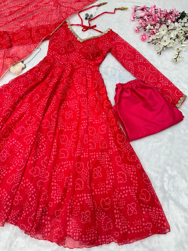 Casual Wear Georgette Printed Red Color Anarkali Gown