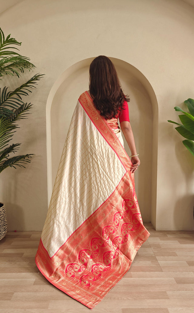 Description - Paithani silk saree with rich contrast weaving pallu and border.