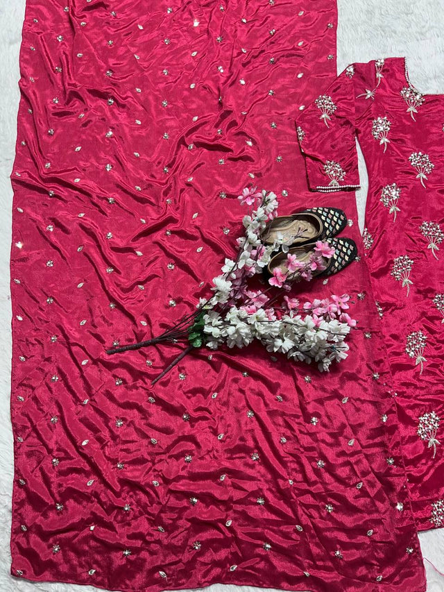 | Fabric | Chinon fabric Material With Heavy Embroidery 5mm Sequence work |