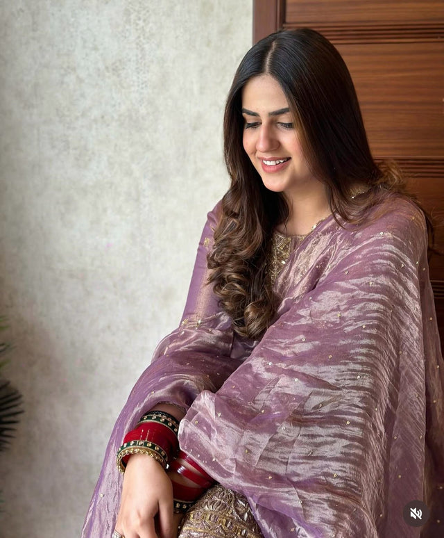 Dupatta Fabric : Pure Twin-Tisyu Net With 5mm Siqwans Embroidery Work With Full-Stitch