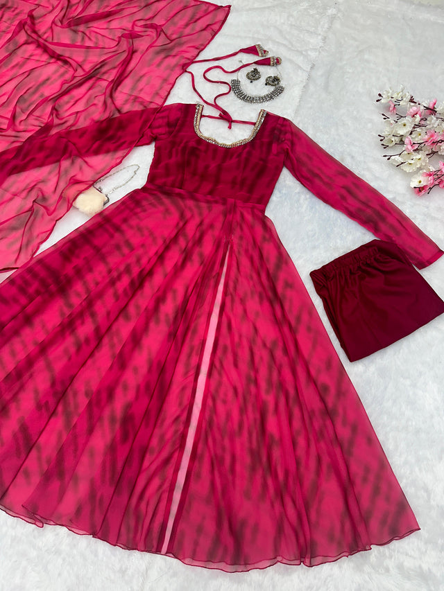 Classic Georgette Pink Color Mirror Work Anarkali Suit