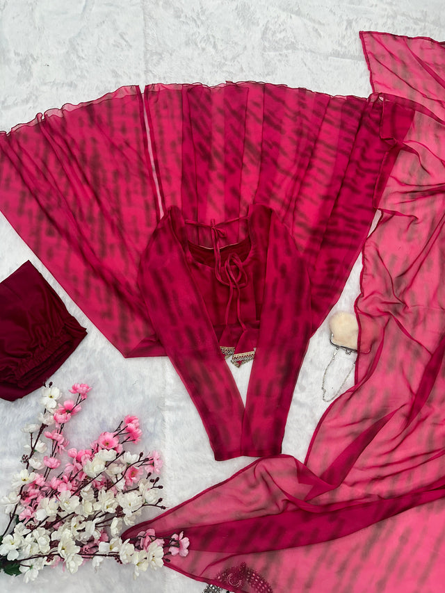 Anarkali - Pure Georgette leheriya  printed front side open Slit Anarkali suit of huge flair with Designer real Mirror work Lace Border đ¸