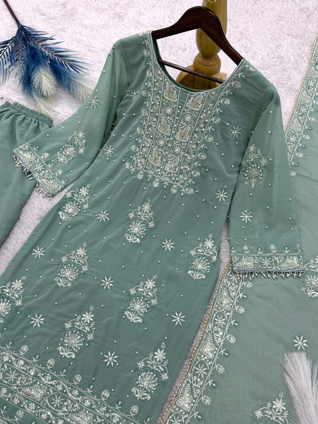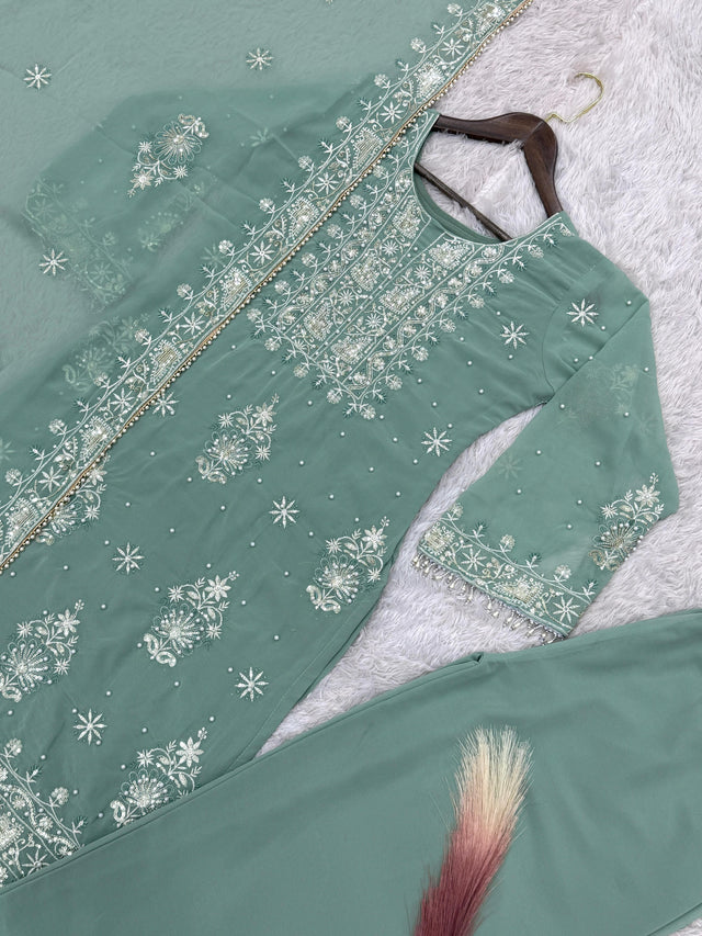 Classic Georgette Sequence Work Rama Color Plazzo Suit