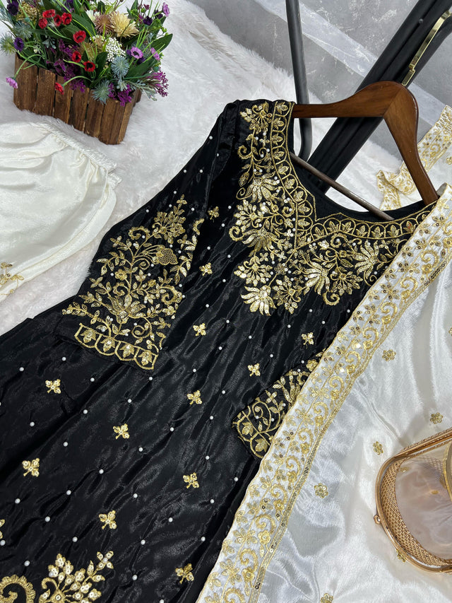 # Plazzo Work : Heavy Embroidery And Sequins Work