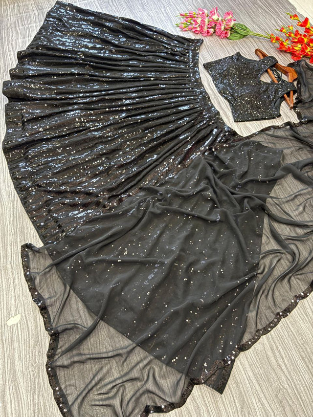 Delightful Sequins Work Black Color Lehenga Choli