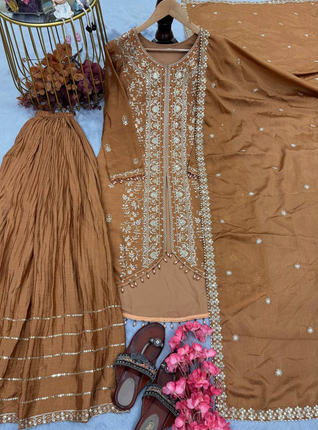 Sarara Palazzo Fabric: Heavy pure chinon Silk With Embroidery 5 mm Sequence Work