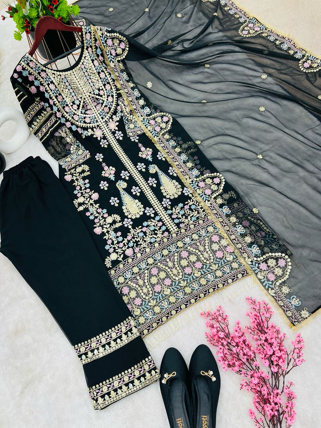 Demanding Embroidery Sequence Work Black Color Anarkali Suit