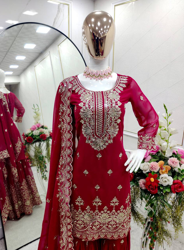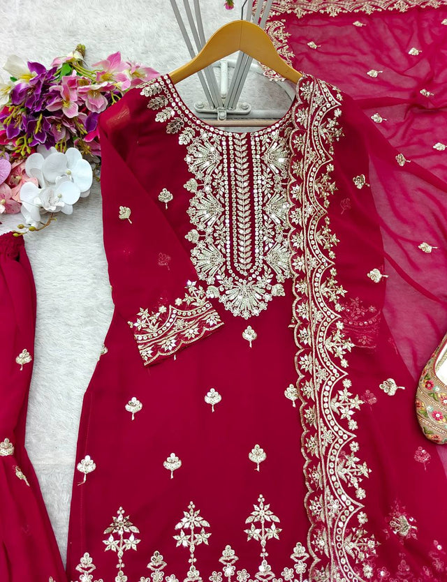 *Dupatta Fabric* : Pure Fox Georgette With 5mm Siqwans Embroidery Work With Full-Stitchย