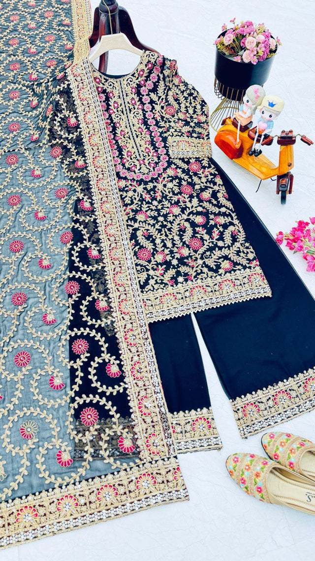 Demanding Navy Blue Color Sequence Work Palazzo Suit