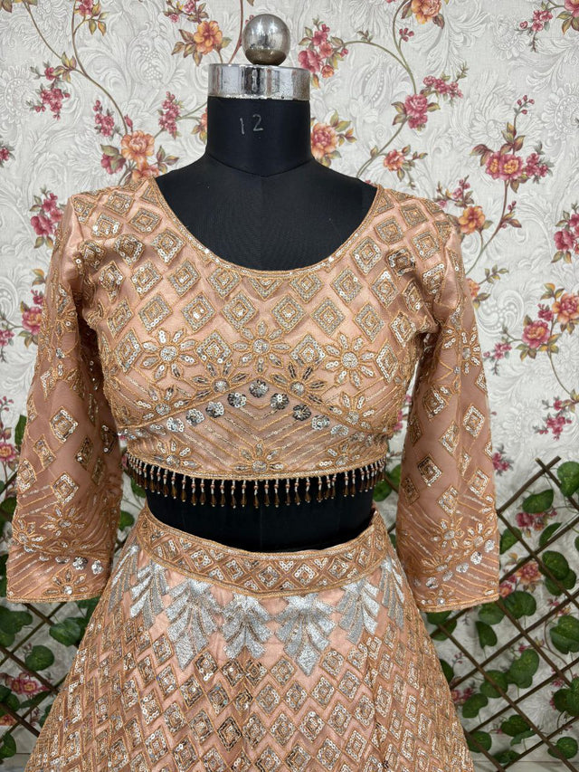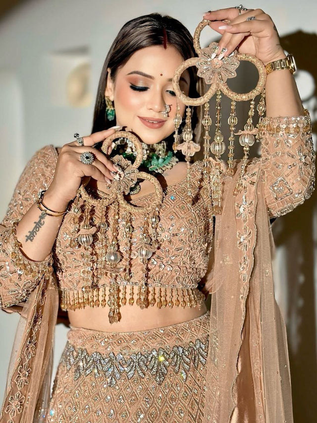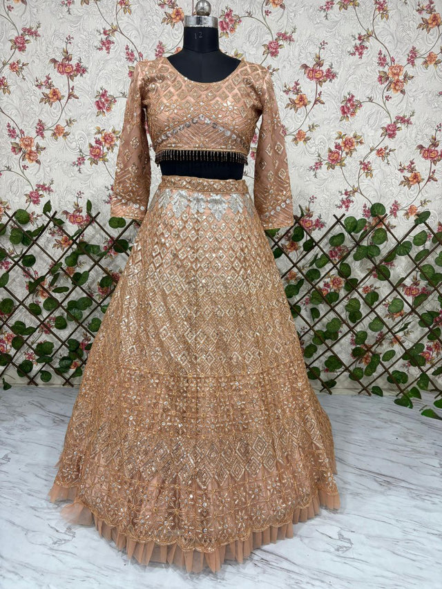 Wedding Lehenga Beige Color Net Embroidered Lehenga Choli