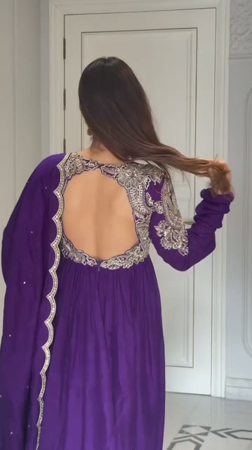 Designer Chinon Silk Anarkali Gown with Elegant Dupatta and Heavy Embroidery Work