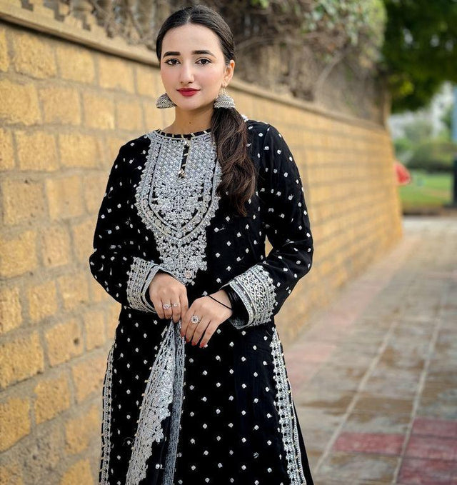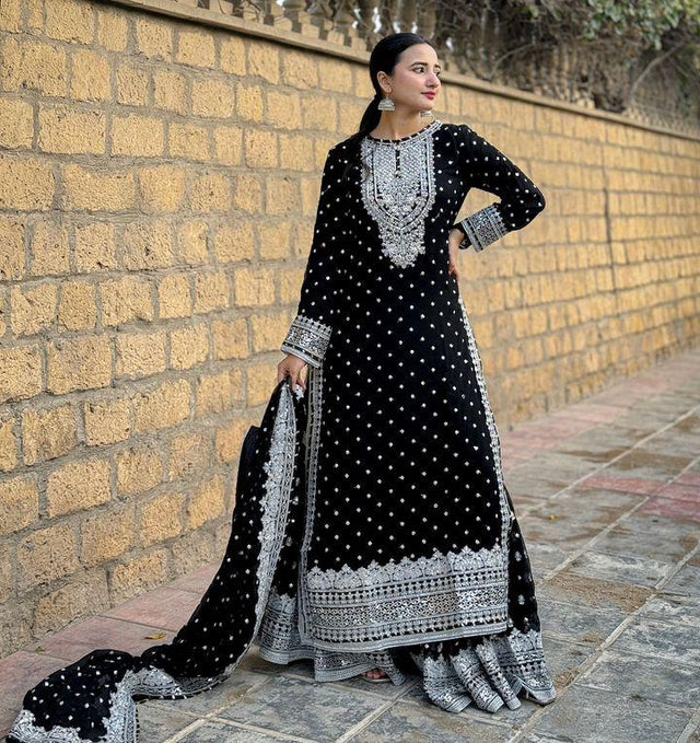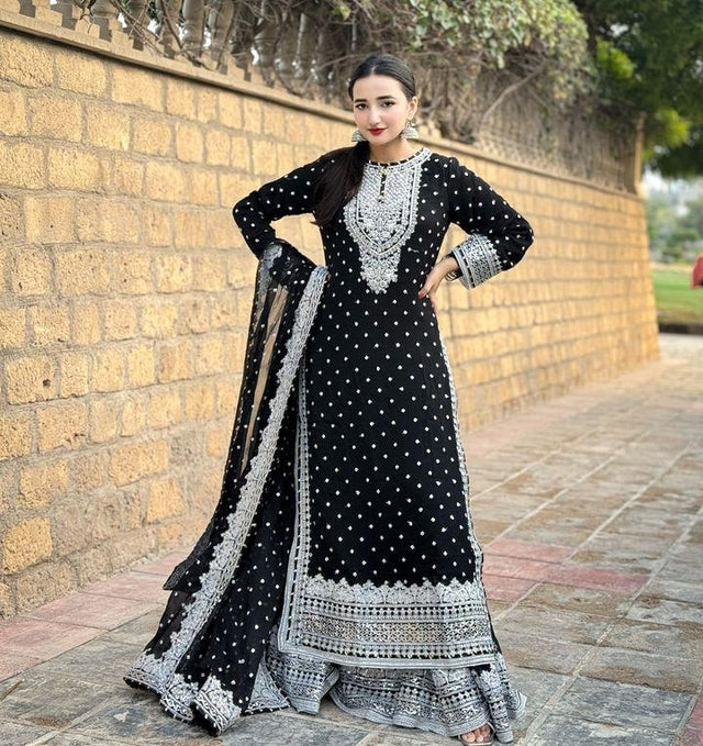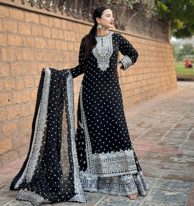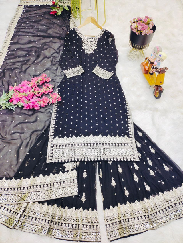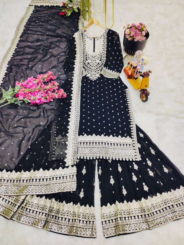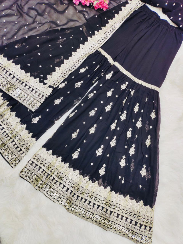 Designer Embroidery WIth Sequence Work Black Sharara Suit