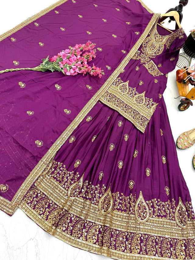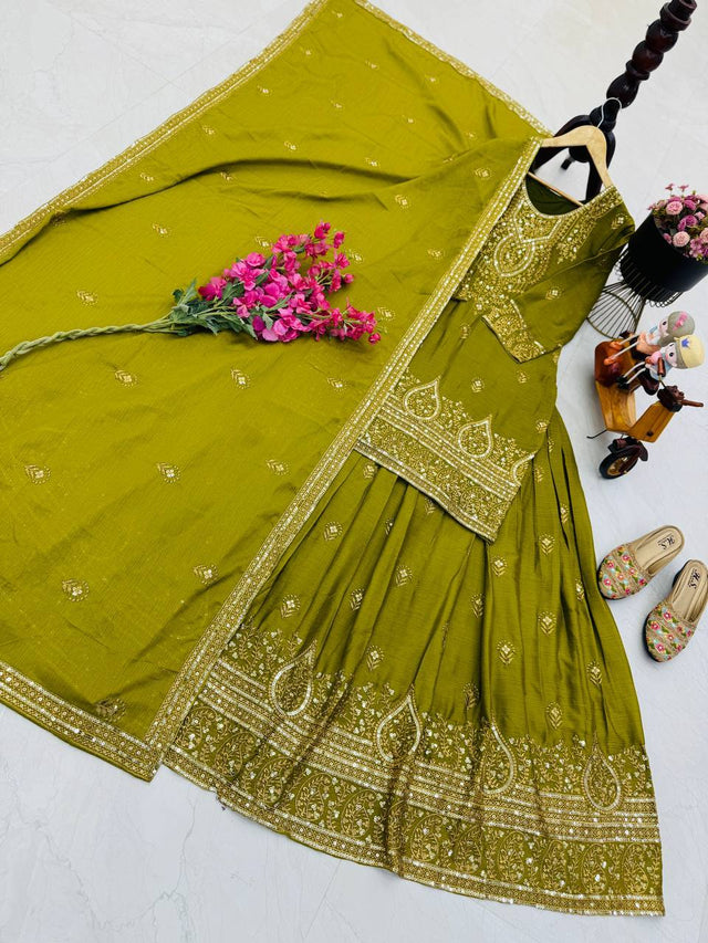 Category: Lehenga Choli, Embroidery Work, Sequence Work, Chinon Silk, Party Wear Collection