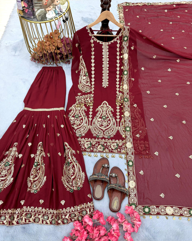 Designer Sequence Heavy Work Maroon Color Sharara Suit