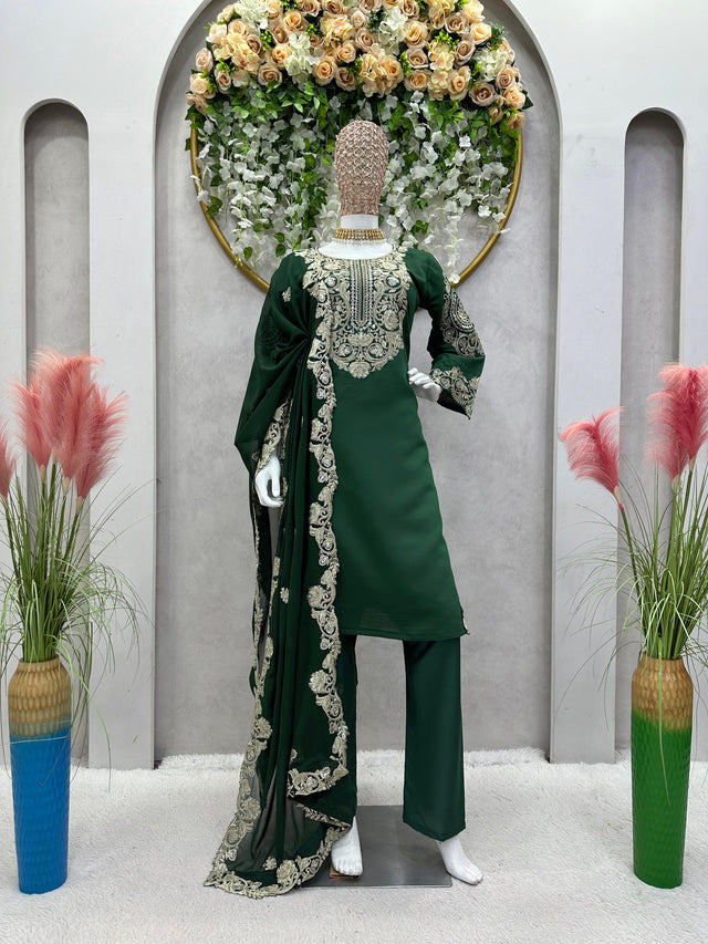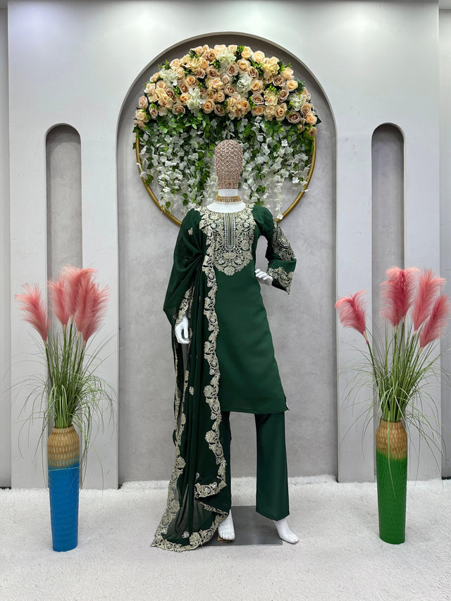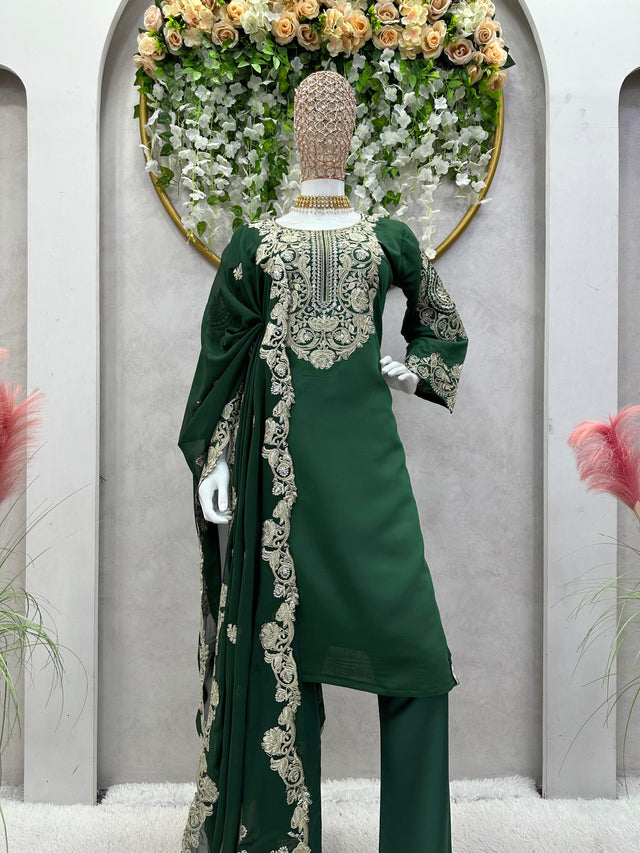 Designer Sequences Work Green Color Anarkali Suit