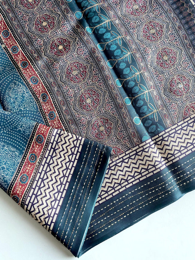 🥻👉🏻Description - premium blend silk sarees with bandhani prints all over the saree.