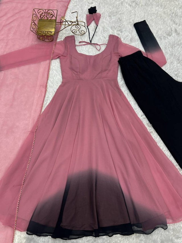 Elegant Georgette Onion Pink Color Anarkali Suit