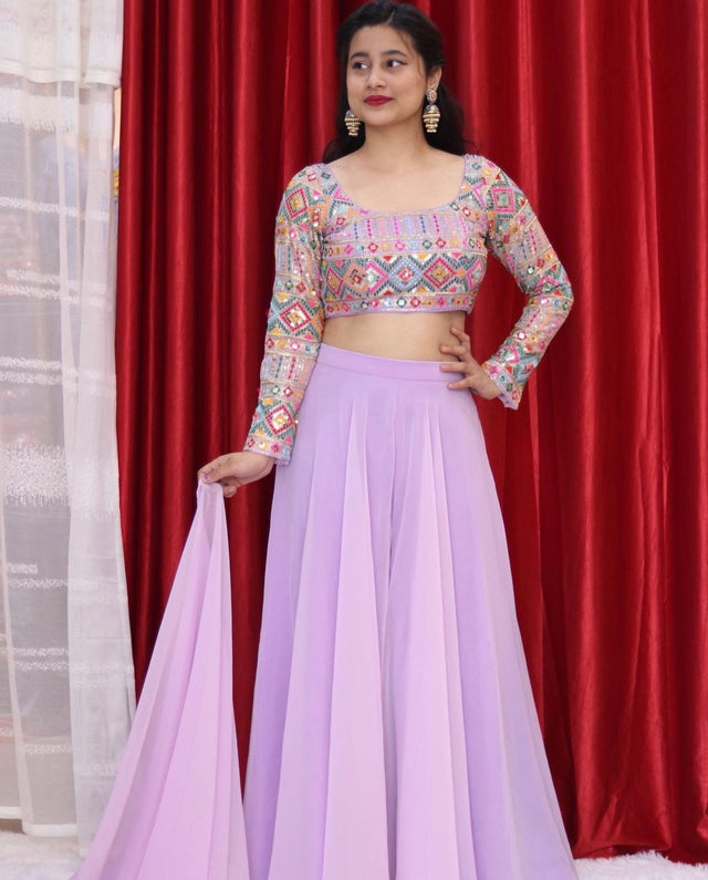 Elegant Thread Work Lavender Color Top With Plain Palazzo